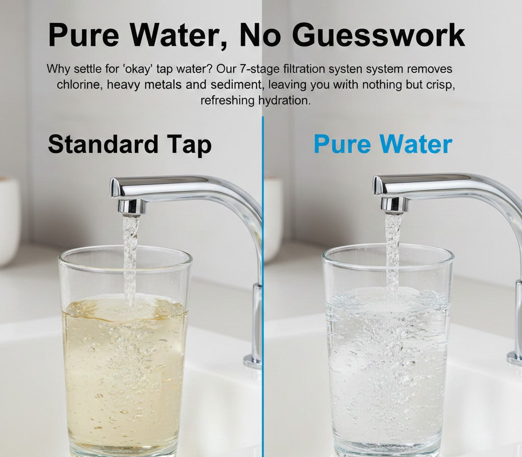 Our 7-stage filtration system removes chlorine, heavy metals, and sediment, leaving you with nothing but crisp, refreshing hydration.